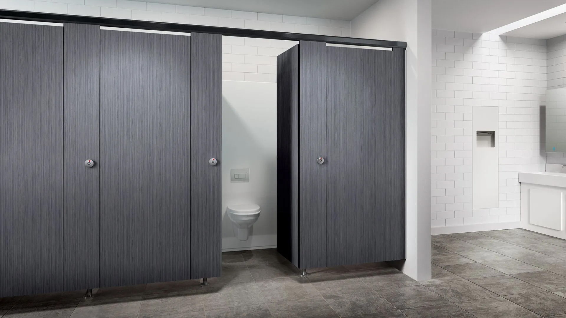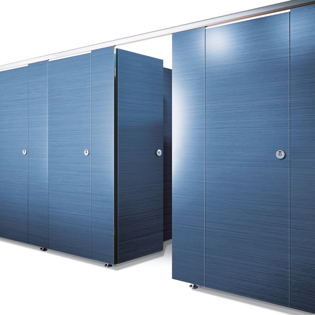 Unsere klassischen Trennwände sind aus 13 mm dickem Phenolharz gefertigt, das porenfrei, wasserbeständig, stoß- und kratzfest und in einer Reihe von Standard- und kundenspezifischen Farben erhältlich ist.